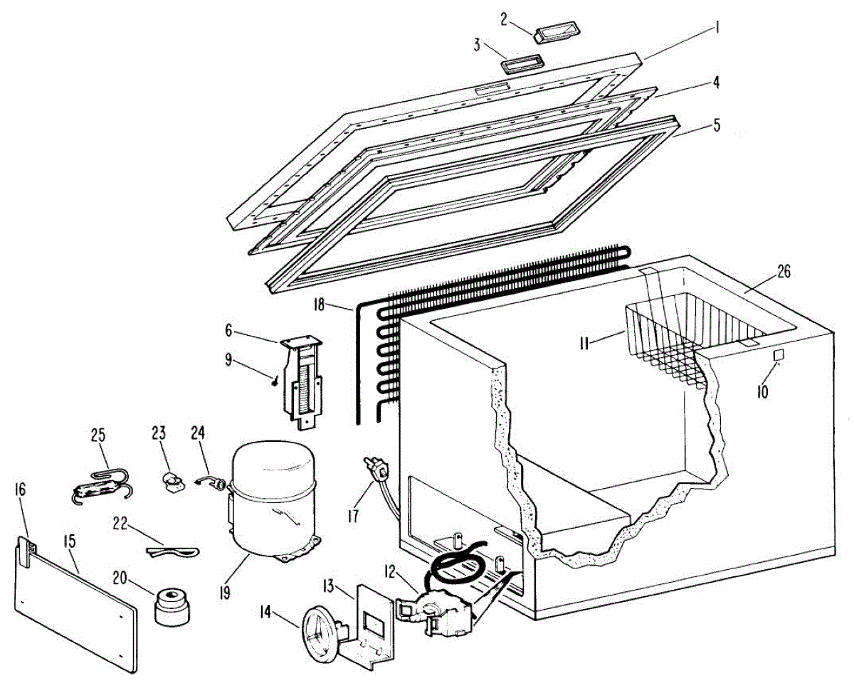 Supplies electrical power from wall outlet to refrigerator. Replace this cord if cut, frayed, overheated, or damaged to restore safe electrical connection.
