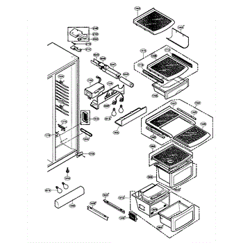 Replacement vegetable drawer tray assembly that restores the refrigerator's crisper storage area, keeping produce contained and organized while preventing spills from reaching lower shelves. Installs as a direct replacement for damaged or missing drawers. What it does:
