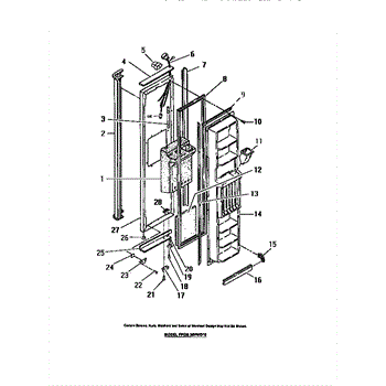 Parts for Frigidaire FPEM26VWDW0: 11 - Freezer Compartment Door, Dispenser Parts