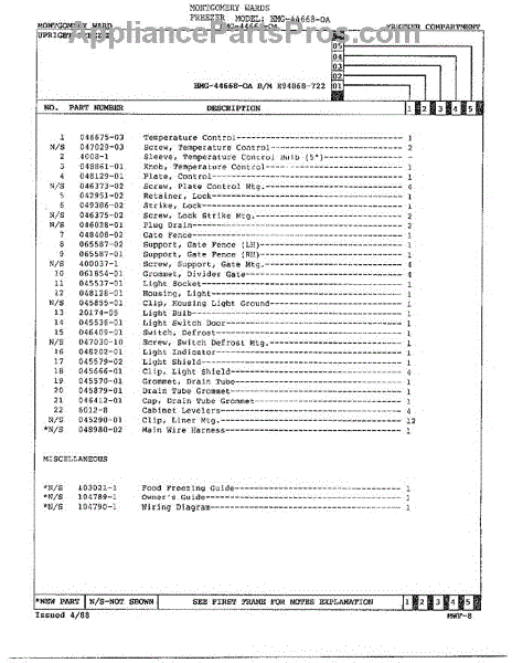 Parts for Frigidaire 44668-OA: Freezer Compartment / Misc Page 2 Parts