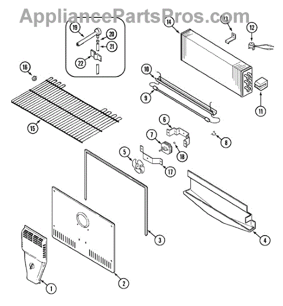This radiant-style defrost heater melts frost from the evaporator during automatic defrost cycles. Replacing a failed heater restores airflow and helps maintain consistent temperatures while preventing ice buildup on the freezer back wall.