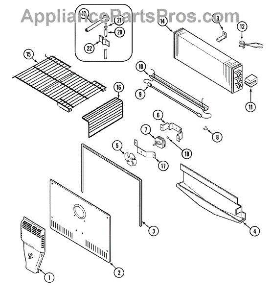 This radiant-style defrost heater melts frost from the evaporator during automatic defrost cycles. Replacing a failed heater restores airflow and helps maintain consistent temperatures while preventing ice buildup on the freezer back wall.