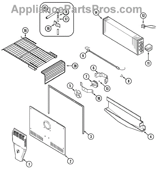 This radiant-style defrost heater melts frost from the evaporator during automatic defrost cycles. Replacing a failed heater restores airflow and helps maintain consistent temperatures while preventing ice buildup on the freezer back wall.