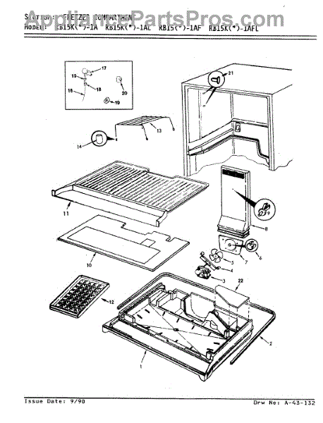 Parts for Magic Chef RB15KA-1AL / AG02A: 02 - Freezer Compartment Parts