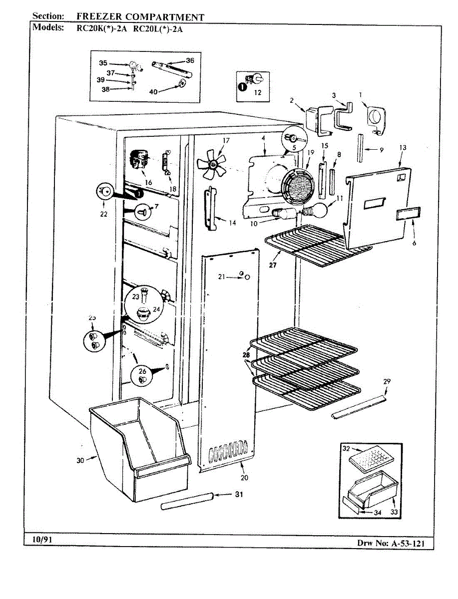 Parts for Magic Chef RC20LY-2A / BS01E: 01 - Freezer Compartment Parts
