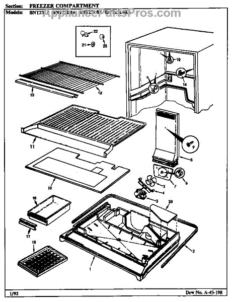 Parts for Maytag BNT23L8K/BL95A: Freezer Compartment Parts