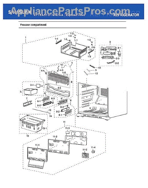 Parts for Samsung RF18A5101WW/AA-00: Freezer Compartment Parts