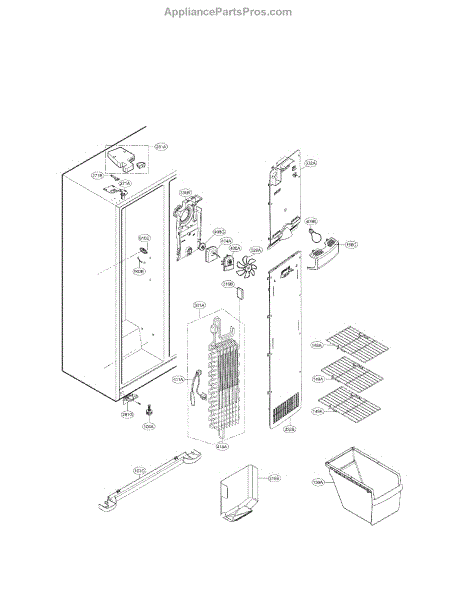 This fan grill assembly covers and directs airflow for the evaporator fan, helping protect the fan and maintain proper circulation inside the compartment. It replaces a cracked, broken or missing grill to restore safe airflow and component protection. What it does: