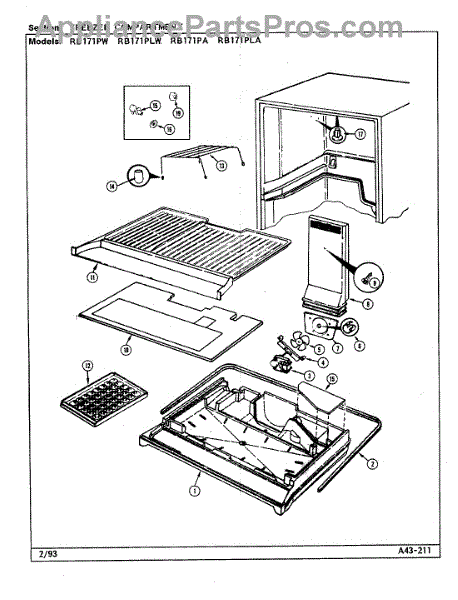 Parts for Magic Chef RB171PLA / DG24A: 01 - Freezer Compartment Parts