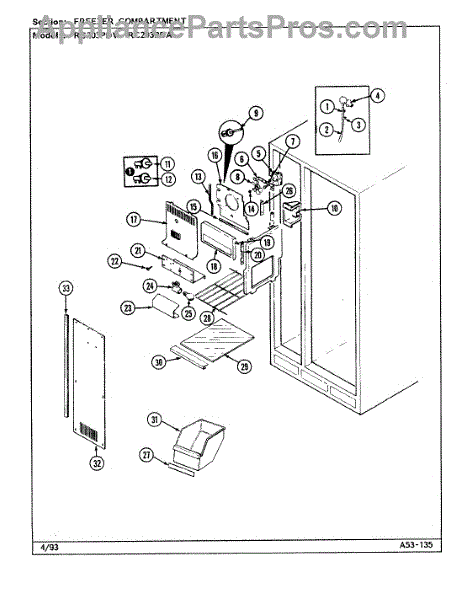 Parts for Magic Chef RC203PDV / DS05A: 01 - Freezer Compartment Parts