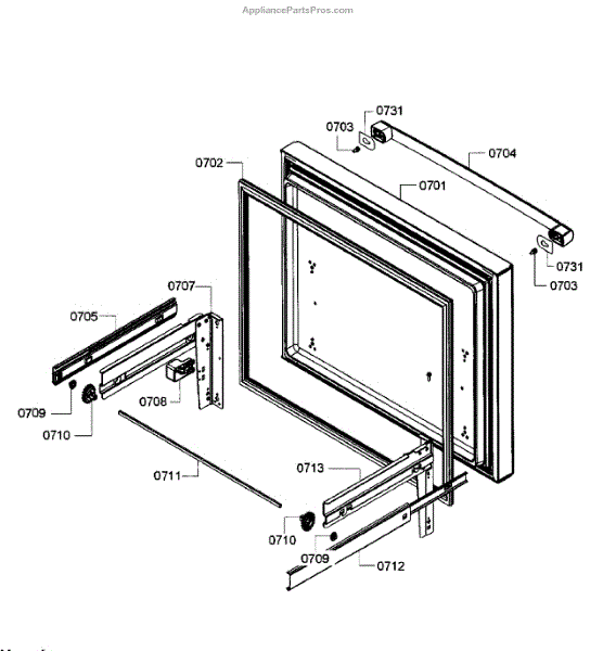The Handle is an OEM part for Bosch refrigerators. This handle is designed to provide a secure grip for opening and closing the refrigerator door, ensuring ease of use and functionality.