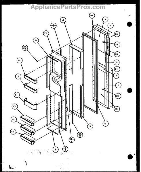 Parts for Amana SLD25JP-P1104012W: Freezer Door (Sld25j / P1104007w) (Sld25jb / P1104009w) (Sld25jp / P1104011w) (Sld22jb / P1104023w) Parts