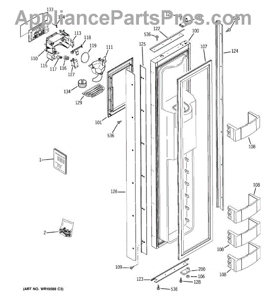 The Ice Door Assembly is an OEM part for GE refrigerators. It is integral to the ice dispenser system, controlling access to the ice chute. This component ensures the efficient delivery of ice cubes or crushed ice when activated and seals off the chute when not in use to maintain the freezer's temperature and prevent frost buildup.