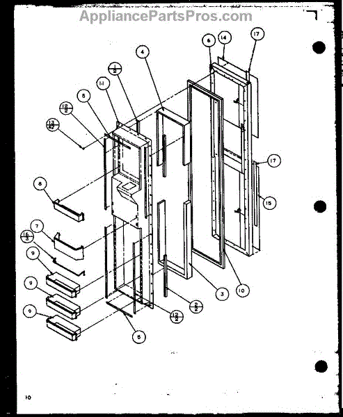 Parts for Amana 36795E-P1152603WE: Freezer Door (36521W / P1121601ww) (36528L / P1121602wl) (36511W / P1121603ww) (36518L / P1121604wl) Parts