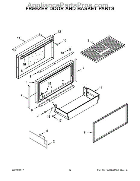 This freezer basket is a removable drawer-style bin that restores organized storage for frozen foods and makes loading and unloading quick and neat. It replaces a cracked, missing, or sagging freezer drawer to help keep items contained. What it does: