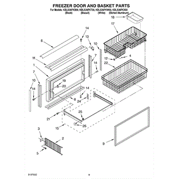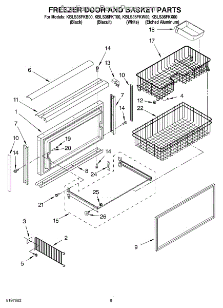 Parts for Kitchenaid KBLS36FKW00: 06 - Freezer Door And Basket Parts