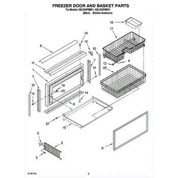 Parts for Kitchenaid KBLS36FMB01: 06 - Freezer Door And Basket Parts