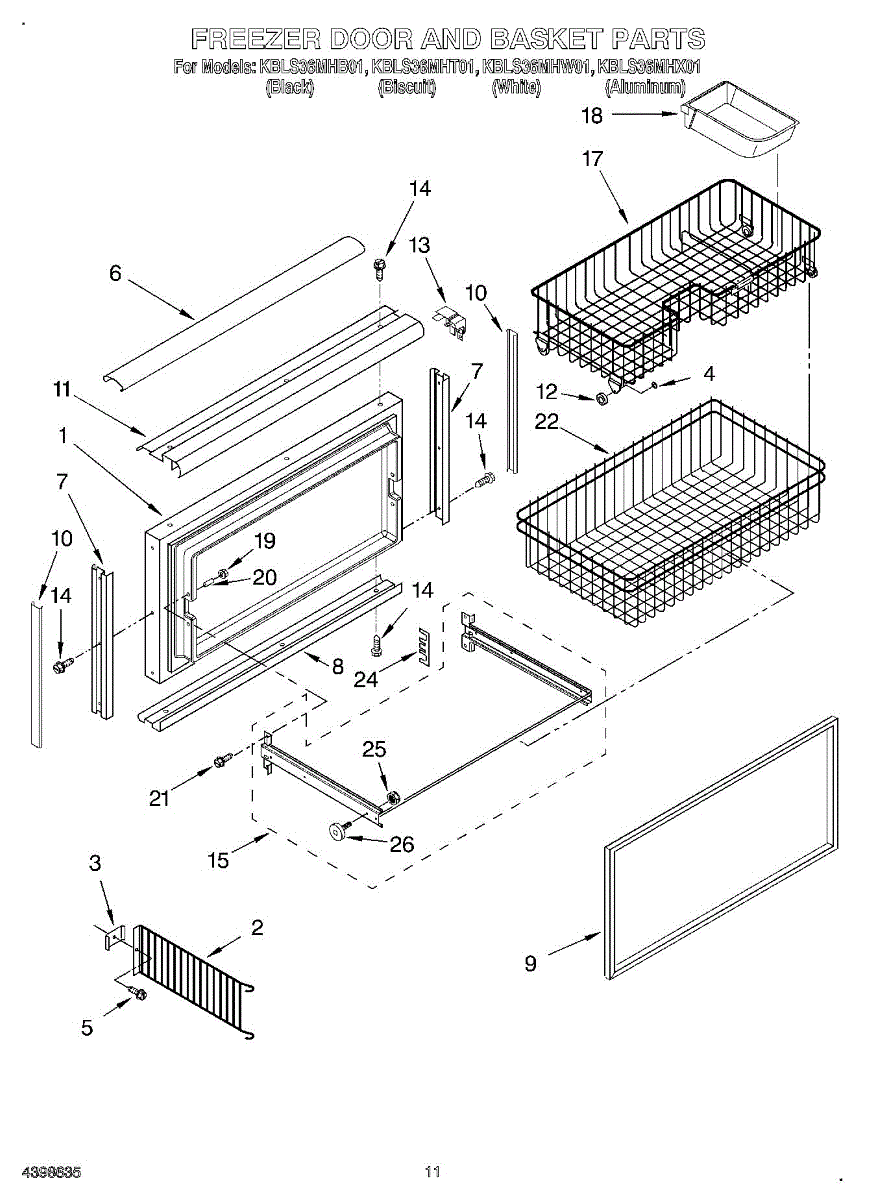 Parts for Kitchenaid KBLS36MHB01: 07 - Freezer Door And Basket Parts