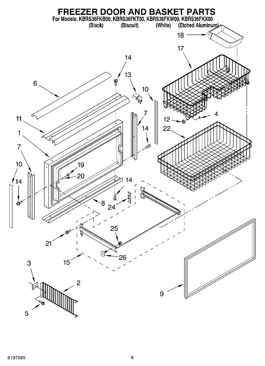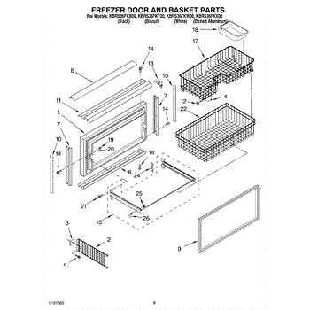Stainless steel corner trim for bottom-mount refrigerators. Replaces cracked, chipped, or missing decorative trim pieces on cabinet corners.