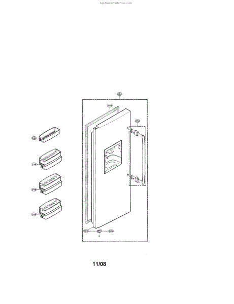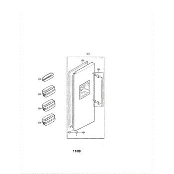 A replacement door stopper assembly that cushions and limits door travel to prevent slamming and reduce wear. Installs at the door hinge area to restore smooth, quieter closing and proper alignment. What it does: