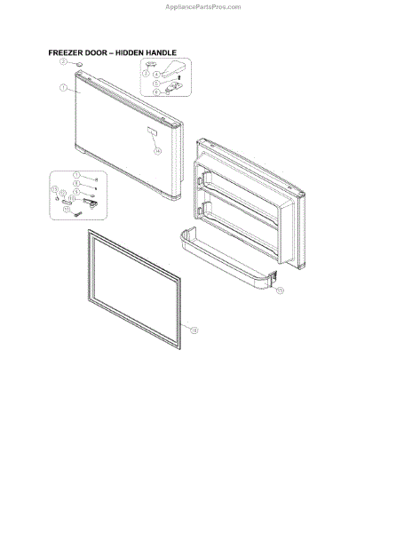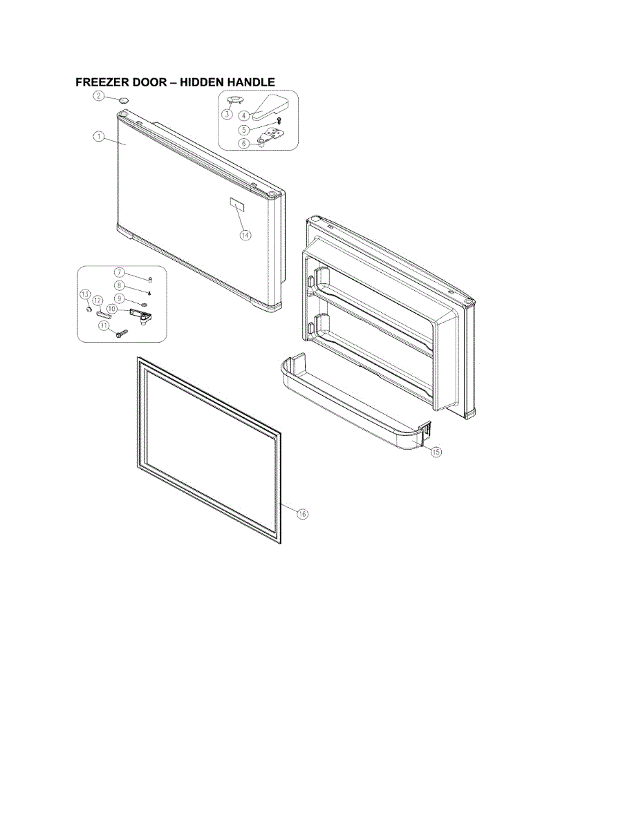 Parts for Kenmore 111.60519910 (11160519910, 111 60519910): Freezer Door - Hidden Handle Parts