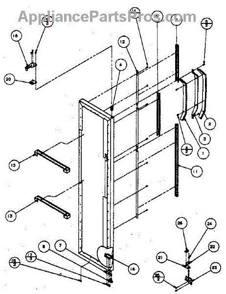Parts for Amana SC25H: Freezer Door, Hinge And Trim Parts
