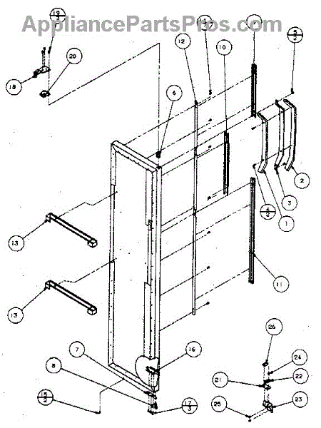Parts for Amana SC25H: Freezer Door, Hinge And Trim Parts