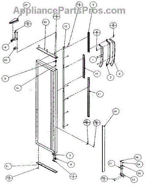 Parts for Amana 36048-P1122102W: Freezer Door Hinge & Trim Parts
