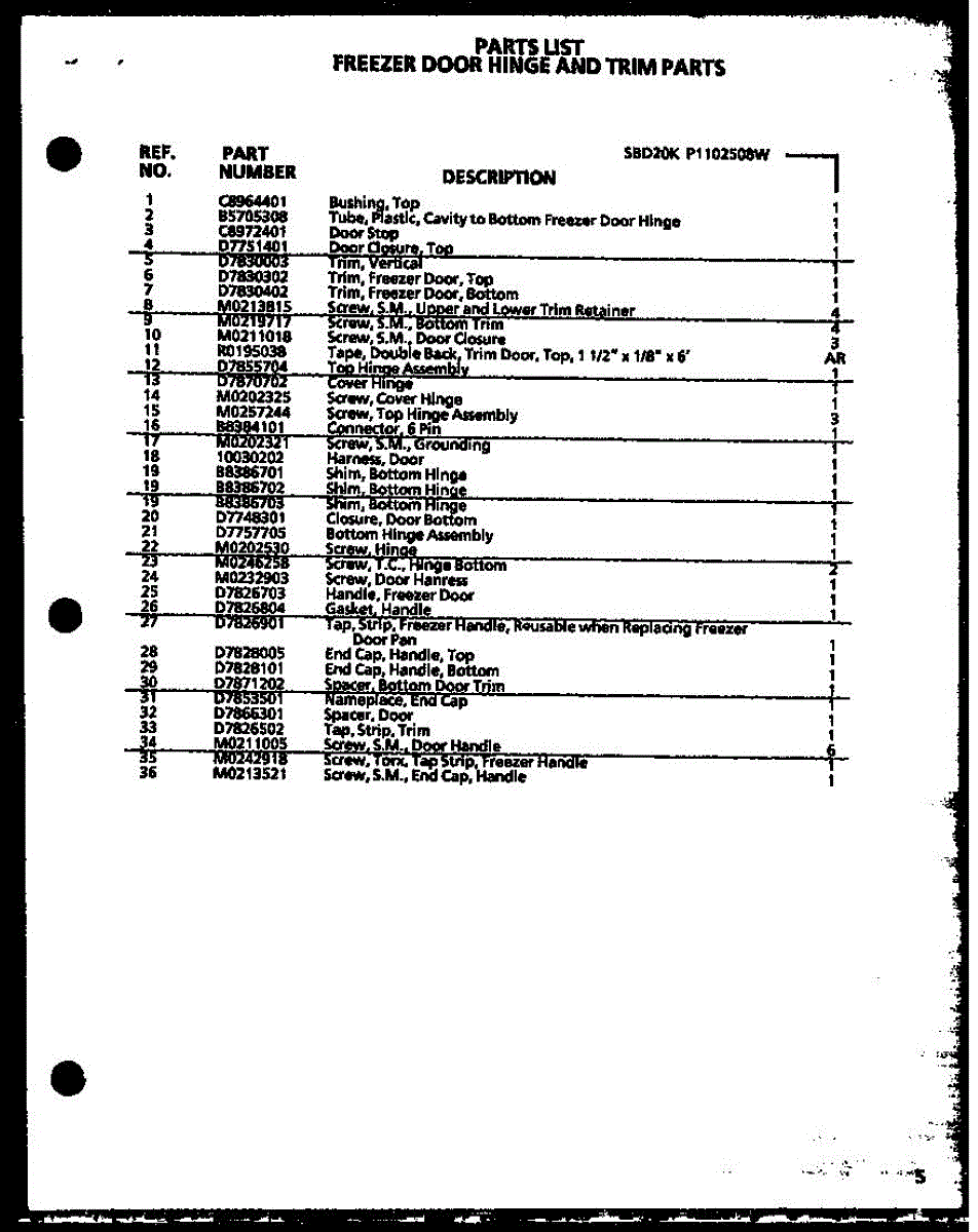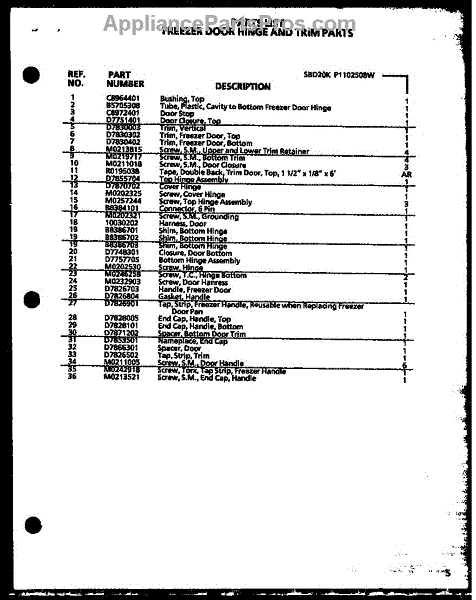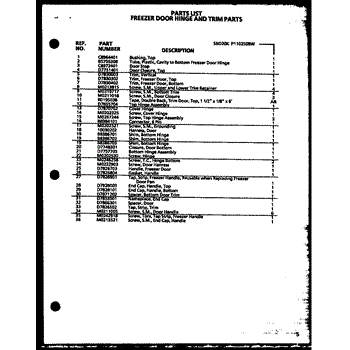 Parts for Amana SBD20K-P1102508W: Freezer Door Hinge And Trim Parts