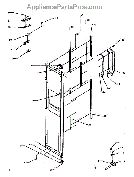 Parts for Amana SXD19NL-P1168802WL: Freezer Door Hinge / Trim Parts