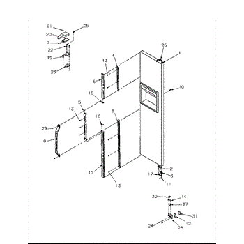 Parts for Amana SXD22S2E-P1190416WE: Freezer Door Hinge And Trim Parts