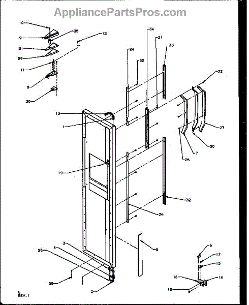 Parts for Amana SZD22NL-P1162401WL: Freezer Door Hinge And Trim Parts