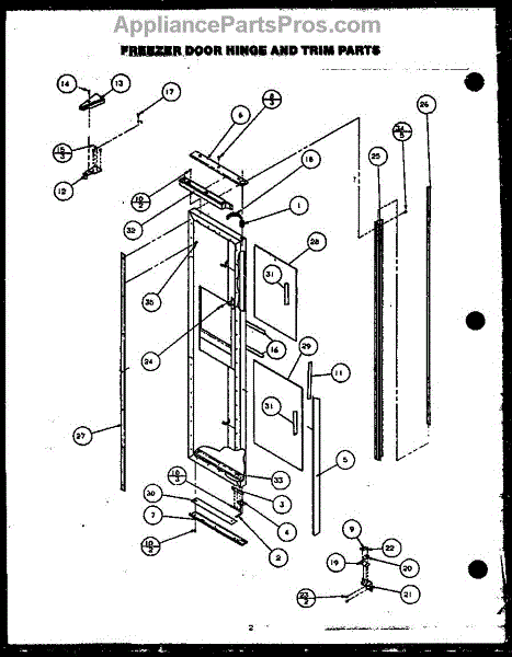 Parts for Modern Maid GRH220-1D: Freezer Door Hinge And Trim Parts
