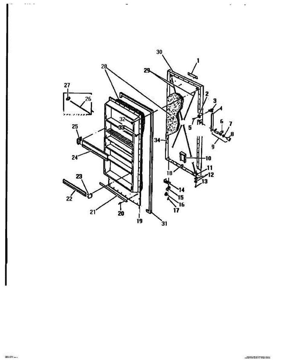 Kit of 24 clips secures freezer door gaskets. Replace when installing new gaskets or if clips become brittle. Verify model compatibility before ordering.