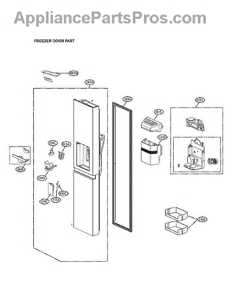 This ice dispenser assembly is the in-door module that channels ice through the dispenser and supports the operating components. Replacing a worn assembly restores reliable dispensing and helps reduce jams, leaks, and frost around the chute.
