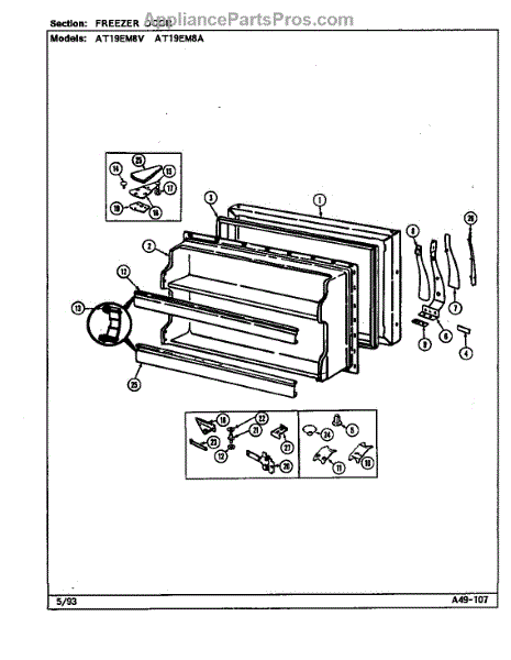 Parts for Admiral AT19EM8V/DA56A: Freezer Door (At19em8a / Da56a) (At19em8v / Da55a) Parts