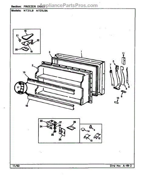 Parts for Admiral NT21L9A/CA75A: Freezer Door Parts