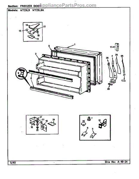 Parts for Admiral NT23L9A/BA98C: Freezer Door Parts