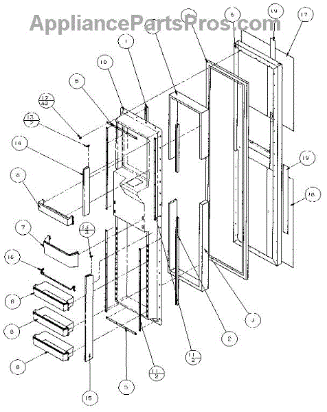 Parts for Amana 35278-P1121806W: Freezer Door Parts