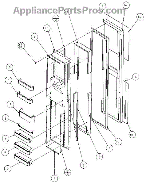 Parts for Amana 36508-P1121708W: Freezer Door Parts