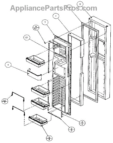 Parts for Amana 36768-P1135803W: Freezer Door Parts
