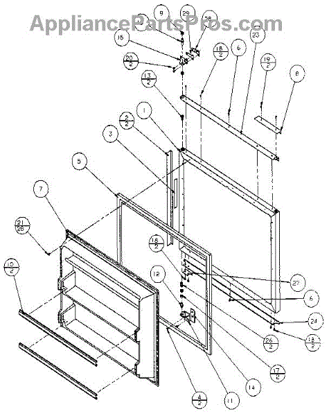Parts for Amana 86061-P1125505: Freezer Door Parts