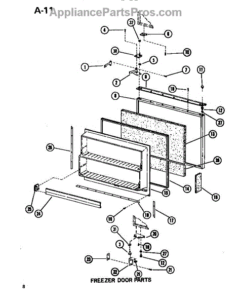 Parts for Amana BKI20E-P747027W: Freezer Door Parts