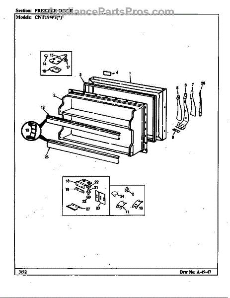 Parts for Crosley CNT19W7A/CC56A: Freezer Door Parts