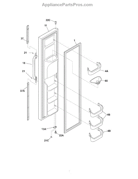 The Upper Freezer Door Bin is an OEM part for Frigidaire side-by-side refrigerators. It provides organized storage for freeze-sensitive items like ice cream in the freezer door. The door bin measures approximately 13"L x 5 1/2" W.