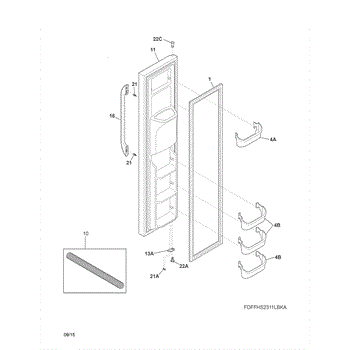 The Door Bin is an OEM part for Frigidaire refrigerators. It is a storage compartment located on the inside of the refrigerator door, providing a convenient space to store items such as condiments, beverages, and jars. This bin measures about 10 inches wide by 4 inches high by 6 inches deep.