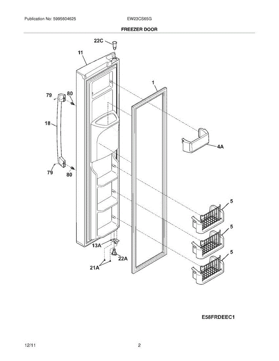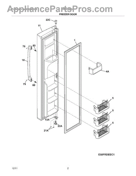 Forms an airtight seal between freezer door and cabinet. Replace when worn or damaged to prevent warm air leaks, frost buildup, and temperature issues.