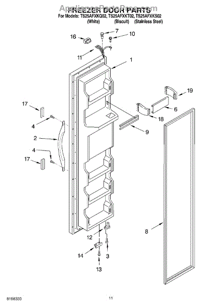 Parts for Estate TS25AFXKT02: 07 - Freezer Door Parts