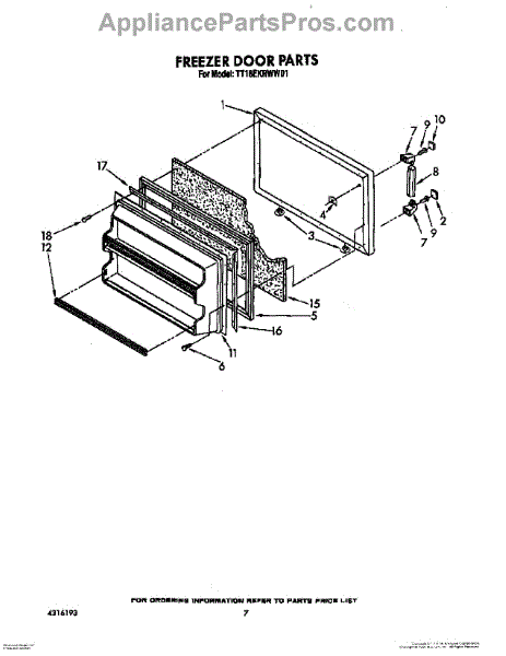 Parts for Estate TT18EKRWW01: 06 - Freezer Door Parts