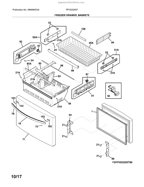 The Slide Assembly is an OEM part specifically designed for Frigidaire refrigerators. It secures crisper and pantry bins within the refrigerator interior, providing gliding functionality for easy access to stored items.